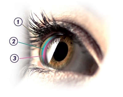 Slzný film se skládá ze tří vrstev: